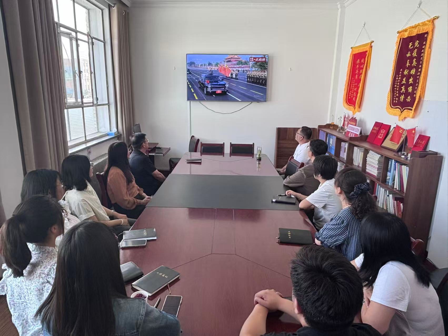 全体人员于上午9时齐聚会议室,全程肃立观看阅兵盛况。直播中,受阅部队铿锵的步伐、新型装备的震撼亮相、抗战老兵的庄严敬礼,生动展现了新时代中国国防力量的飞跃发展与捍卫和平的坚定决心。当国歌奏响时,全员齐声高唱,爱国热情随受阅方阵的雄姿澎湃升腾。党员干部纷纷感慨:“大国重器彰显硬实力,更提醒我们和平来之不易,须以实干守护盛世安宁。”