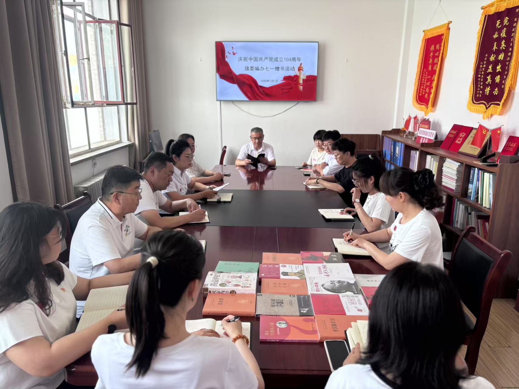 2025年7月1日,杭锦后旗旗委编办精心组织“七一”赠书活动,为全体党员干部送上了一份特别的节日礼物——精选的党的事业、健康与家庭主题书籍。这份礼物虽不厚重,却饱含组织对同志们深切的关怀与牵挂。